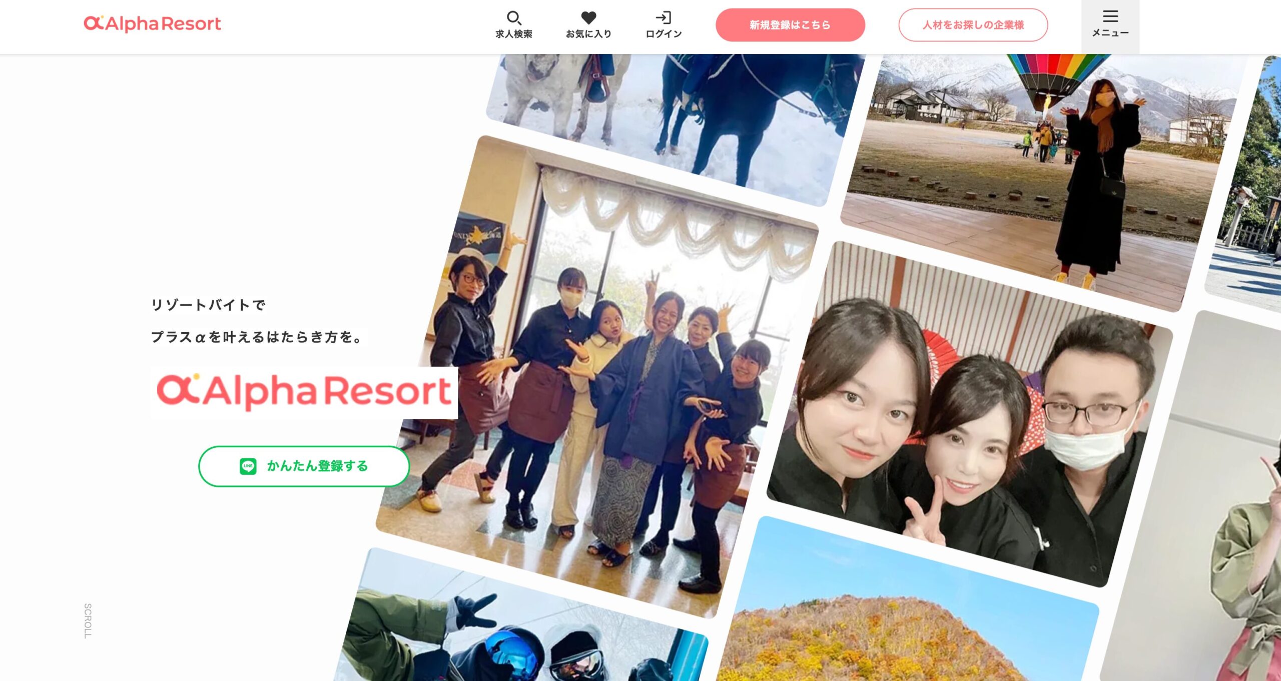 アルファリゾートは全国対応で求人ジャンルが幅広く、短期・長期どちらも選びやすいのが特徴です。「選択肢をたくさん見てから決めたい人」におすすめ。